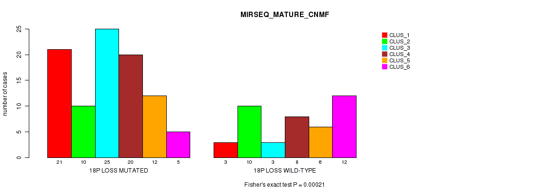 Figure S100. Get High-res Image Gene #72: '18p loss' versus Molecular Subtype #11: 'MIRSEQ_MATURE_CNMF'