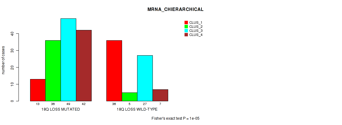 Figure S102. Get High-res Image Gene #73: '18q loss' versus Molecular Subtype #2: 'MRNA_CHIERARCHICAL'