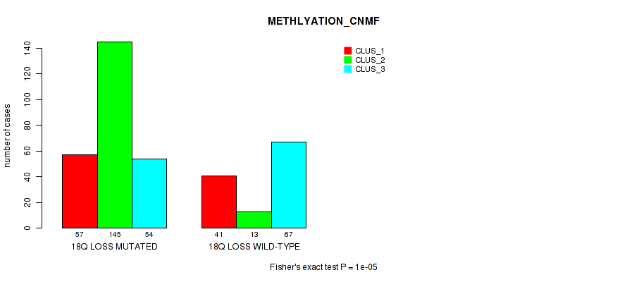 Figure S104. Get High-res Image Gene #73: '18q loss' versus Molecular Subtype #4: 'METHLYATION_CNMF'