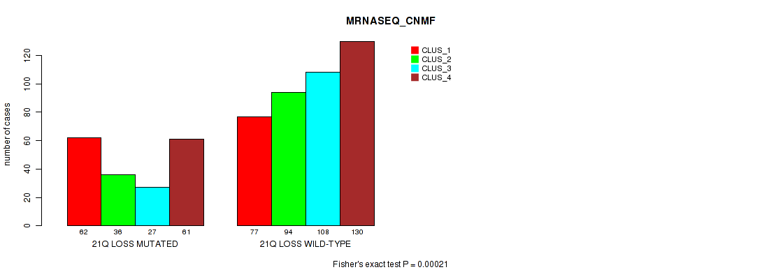 Figure S110. Get High-res Image Gene #78: '21q loss' versus Molecular Subtype #7: 'MRNASEQ_CNMF'