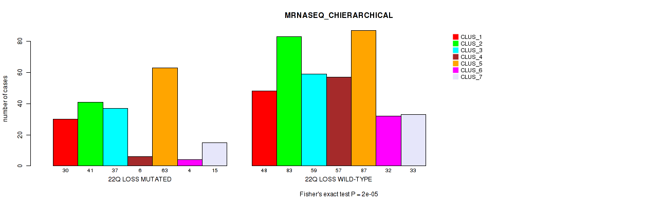 Figure S111. Get High-res Image Gene #79: '22q loss' versus Molecular Subtype #2: 'MRNA_CHIERARCHICAL'