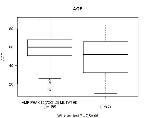 Figure S5. Get High-res Image Gene #10: 'amp_7q21.2' versus Clinical Feature #2: 'AGE'
