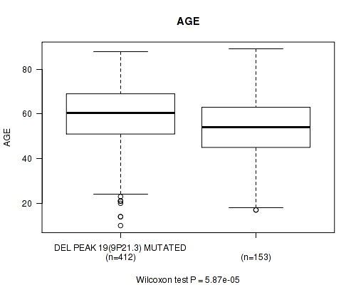 | DEL PEAK 19(9P21.3) MUTATED | 412 | 59.2 (13.8) |