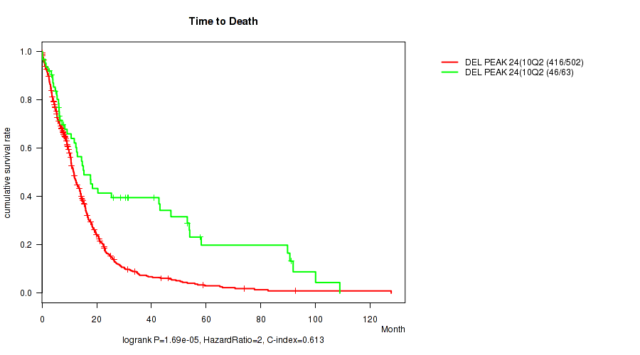 | DEL PEAK 24(10Q23.31) WILD-TYPE | 63 | 46 | 0.2 - 108.8 (12.7) |