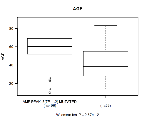 Table S2. Gene #8: 'amp_7p11.2' versus Clinical Feature #2: 'AGE'
