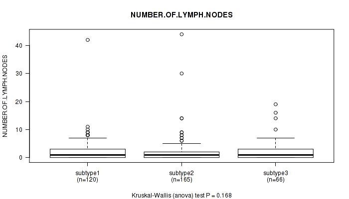3 subtypes identified in current cancer cohort by 'MIRSEQ CHIERARCHICAL'. These subtypes correlate to 'NUMBER.OF.LYMPH.NODES'.