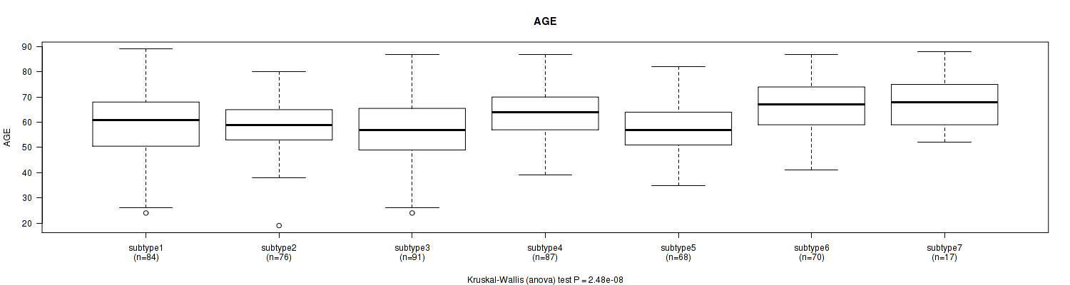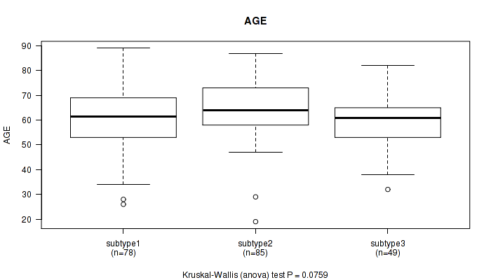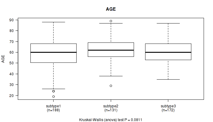 Figure S111. Get High-res Image Clustering Approach #10: 'MIRseq Mature cHierClus subtypes' versus Clinical Feature #2: 'AGE'