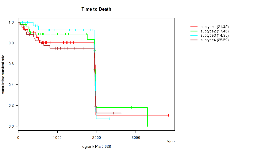 Table S120. Clustering Approach #10: 'MIRseq Mature cHierClus subtypes' versus Clinical Feature #1: 'Time to Death'