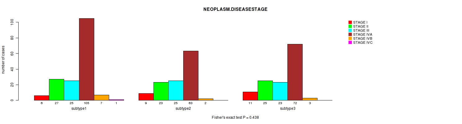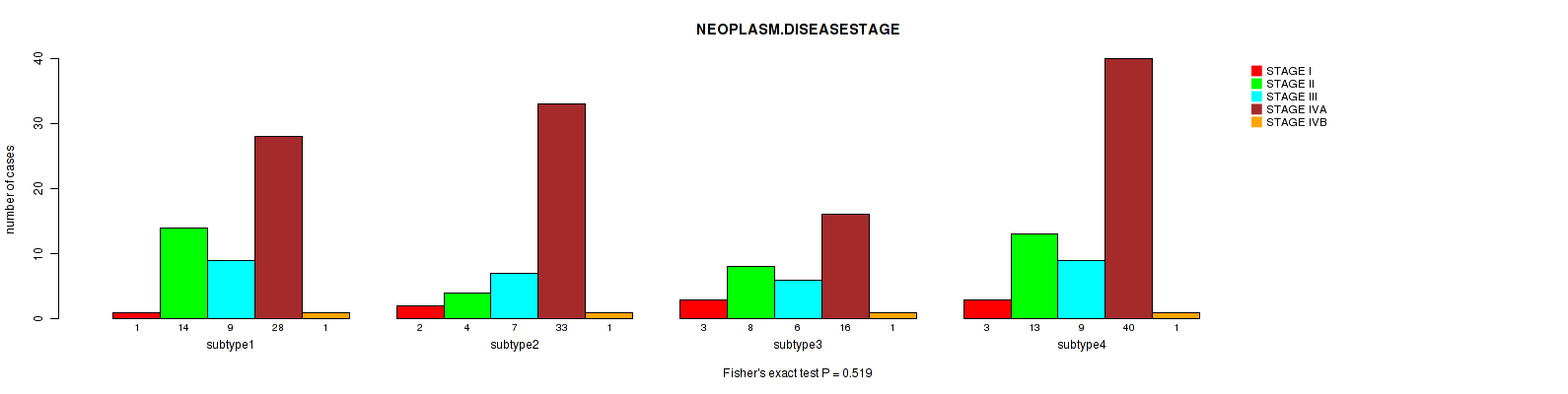 | NEOPLASM DISEASESTAGE | Fisher's exact test |