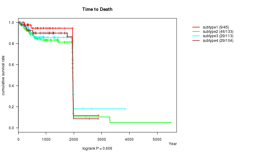 Figure S110. Get High-res Image Clustering Approach #10: 'MIRseq Mature cHierClus subtypes' versus Clinical Feature #1: 'Time to Death'