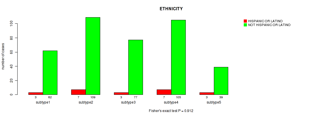 Figure S122. Get High-res Image Clustering Approach #10: 'MIRseq Mature cHierClus subtypes' versus Clinical Feature #13: 'ETHNICITY'