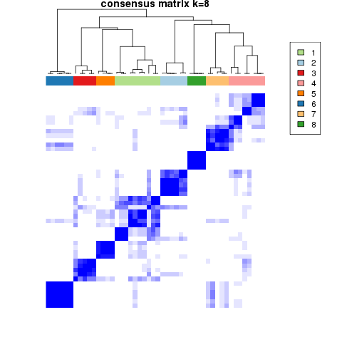 Figure 4. Get High-res Image The consensus matrix after clustering shows 8 clusters with limited overlap between clusters.