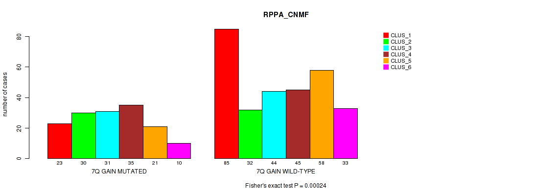 • 7q gain cnv correlated to 'CN_CNMF',  'RPPA_CNMF', and 'MRNASEQ_CNMF'.