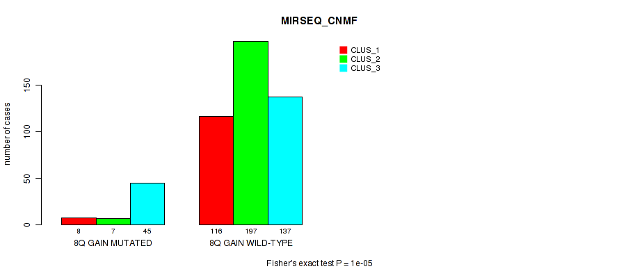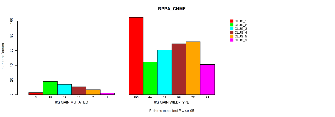 • 8q gain cnv correlated to 'CN_CNMF',  'METHLYATION_CNMF',  'RPPA_CNMF',  'MRNASEQ_CNMF',  'MRNASEQ_CHIERARCHICAL',  'MIRSEQ_CNMF', and 'MIRSEQ_CHIERARCHICAL'.
