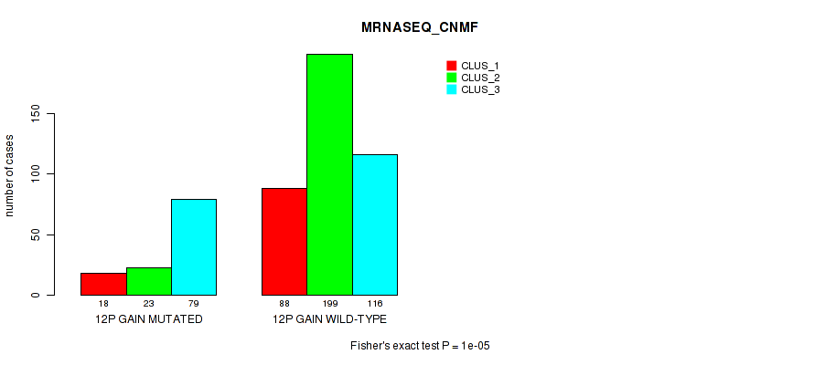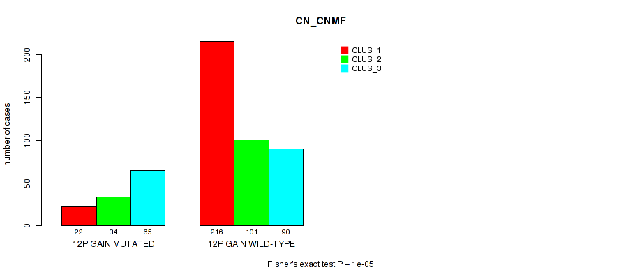 • 12p gain cnv correlated to 'CN_CNMF',  'METHLYATION_CNMF',  'RPPA_CNMF',  'RPPA_CHIERARCHICAL',  'MRNASEQ_CNMF',  'MRNASEQ_CHIERARCHICAL',  'MIRSEQ_CNMF', and 'MIRSEQ_CHIERARCHICAL'.