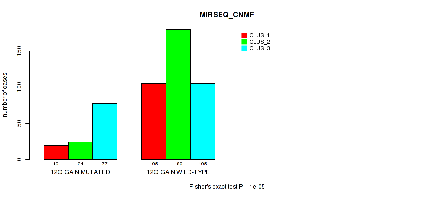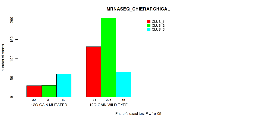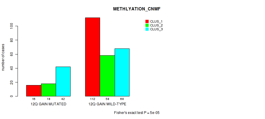 • 12q gain cnv correlated to 'CN_CNMF',  'METHLYATION_CNMF',  'RPPA_CNMF',  'RPPA_CHIERARCHICAL',  'MRNASEQ_CNMF',  'MRNASEQ_CHIERARCHICAL',  'MIRSEQ_CNMF', and 'MIRSEQ_CHIERARCHICAL'.