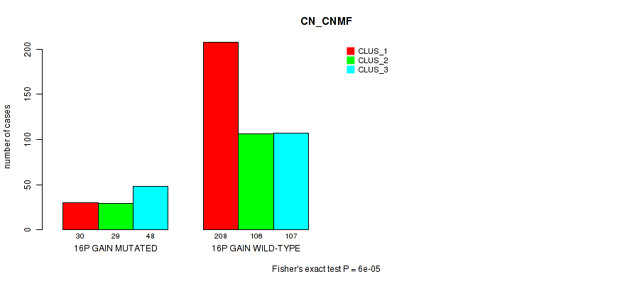 • 16p gain cnv correlated to 'CN_CNMF'.
