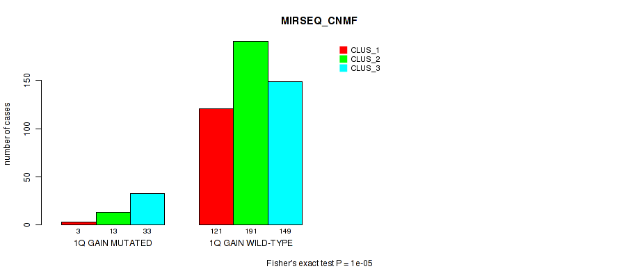 • 1q gain cnv correlated to 'CN_CNMF',  'MRNASEQ_CNMF', and 'MIRSEQ_CNMF'.
