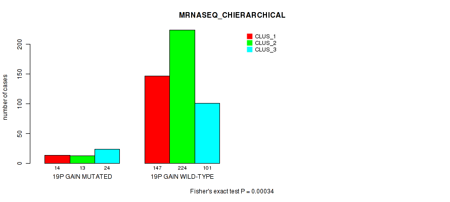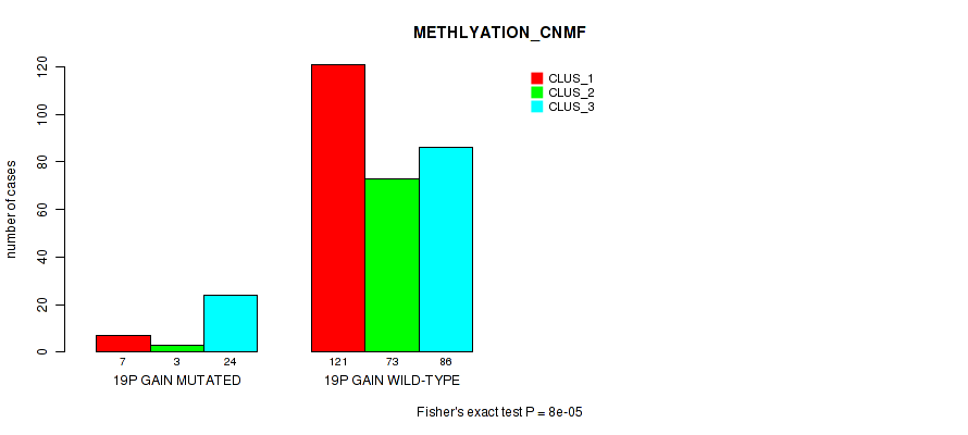 • 19p gain cnv correlated to 'CN_CNMF',  'METHLYATION_CNMF',  'MRNASEQ_CHIERARCHICAL', and 'MIRSEQ_CNMF'.