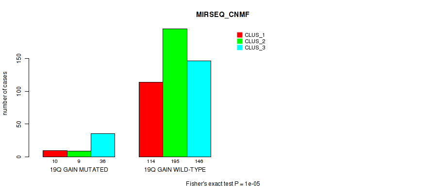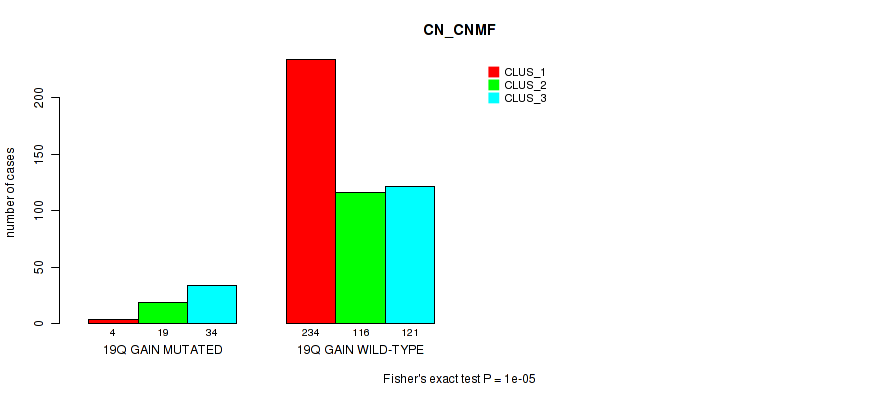• 19q gain cnv correlated to 'CN_CNMF',  'METHLYATION_CNMF',  'RPPA_CNMF',  'MRNASEQ_CHIERARCHICAL', and 'MIRSEQ_CNMF'.