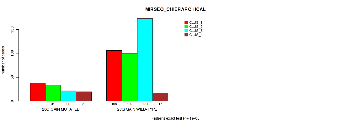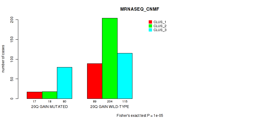 • 20q gain cnv correlated to 'CN_CNMF',  'METHLYATION_CNMF',  'RPPA_CNMF',  'RPPA_CHIERARCHICAL',  'MRNASEQ_CNMF',  'MRNASEQ_CHIERARCHICAL',  'MIRSEQ_CNMF',  'MIRSEQ_CHIERARCHICAL', and 'MIRSEQ_MATURE_CNMF'.