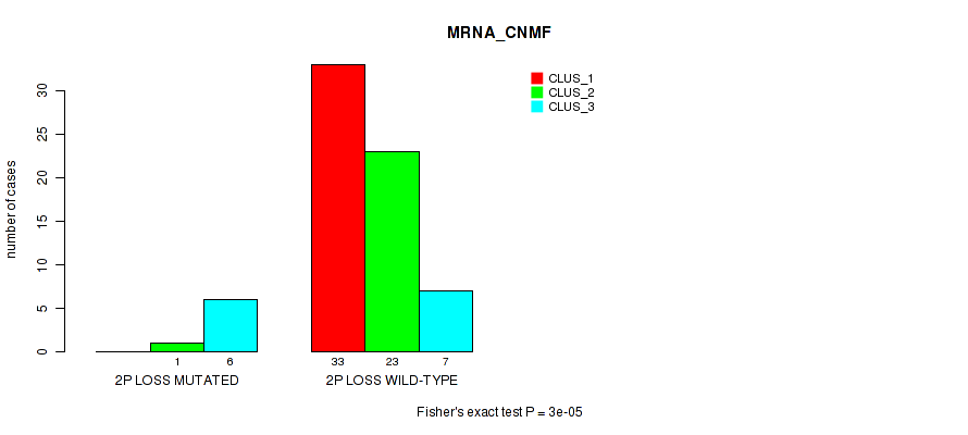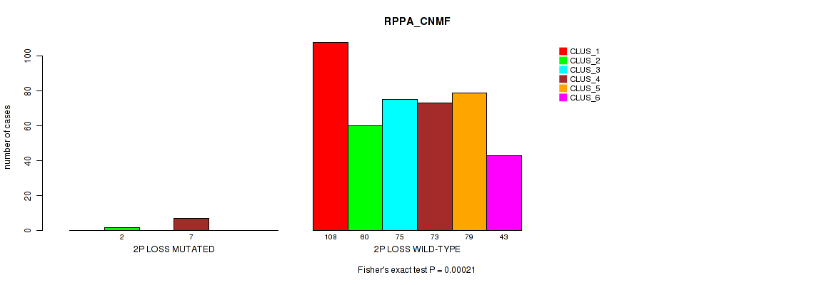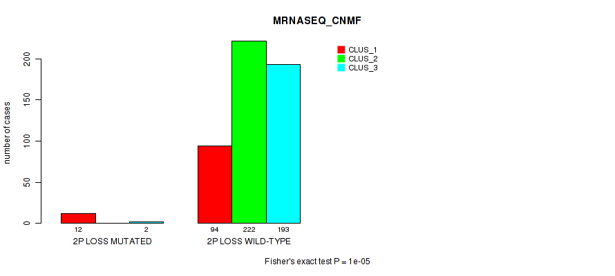 • 2p loss cnv correlated to 'MRNA_CNMF',  'CN_CNMF',  'RPPA_CNMF',  'RPPA_CHIERARCHICAL',  'MRNASEQ_CNMF',  'MRNASEQ_CHIERARCHICAL',  'MIRSEQ_CNMF', and 'MIRSEQ_CHIERARCHICAL'.
