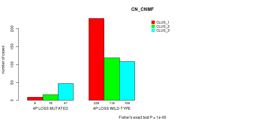 • 4p loss cnv correlated to 'CN_CNMF',  'METHLYATION_CNMF', and 'MRNASEQ_CHIERARCHICAL'.