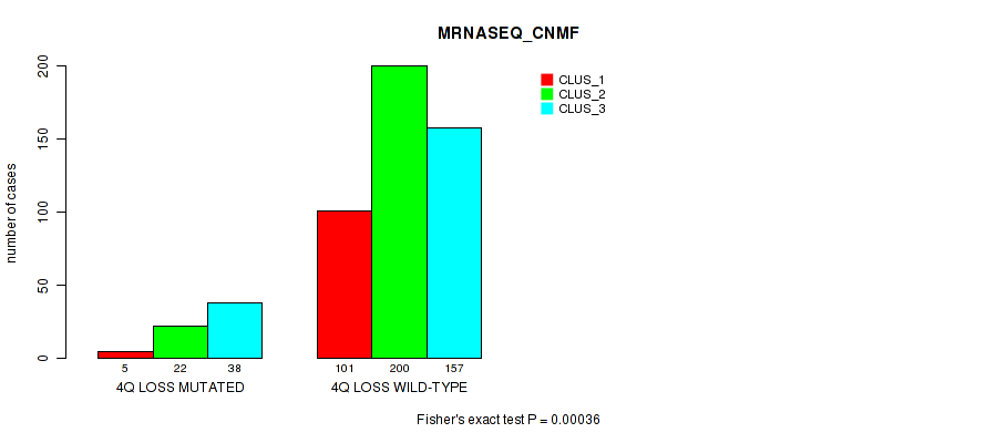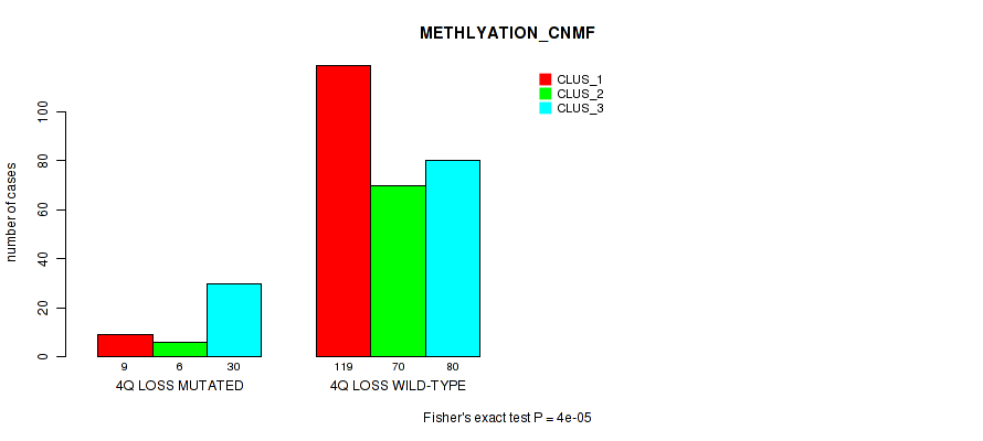 • 4q loss cnv correlated to 'CN_CNMF',  'METHLYATION_CNMF',  'MRNASEQ_CNMF', and 'MRNASEQ_CHIERARCHICAL'.