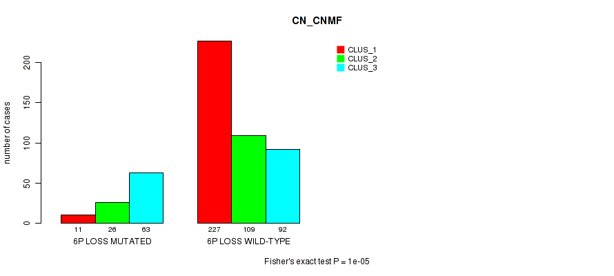 • 6p loss cnv correlated to 'CN_CNMF',  'METHLYATION_CNMF',  'RPPA_CNMF',  'RPPA_CHIERARCHICAL',  'MRNASEQ_CNMF',  'MRNASEQ_CHIERARCHICAL',  'MIRSEQ_CNMF', and 'MIRSEQ_CHIERARCHICAL'.