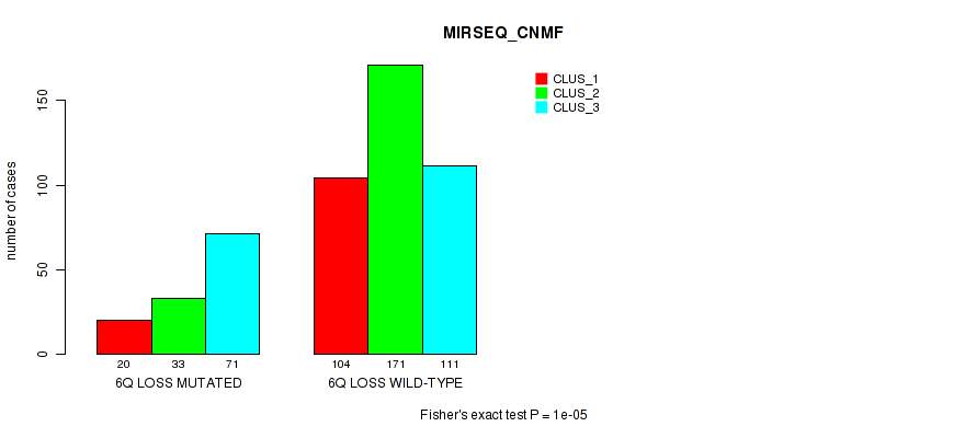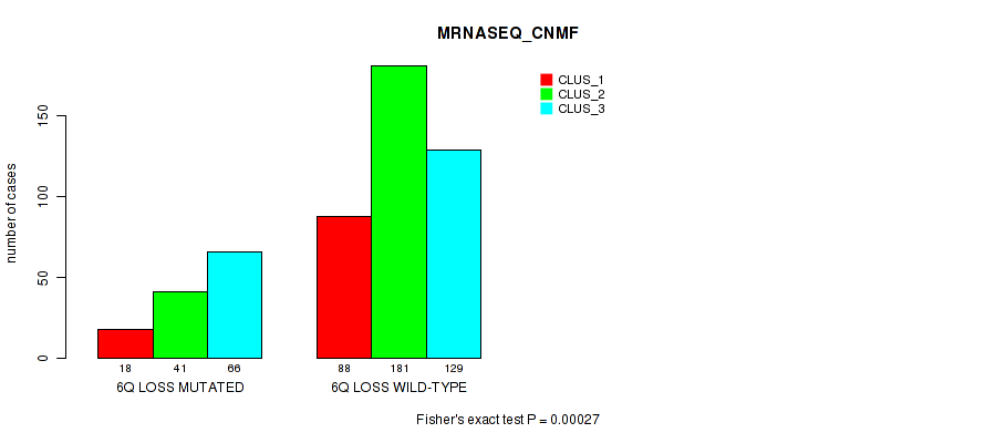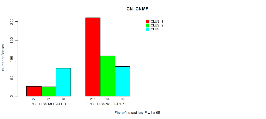 • 6q loss cnv correlated to 'CN_CNMF',  'RPPA_CNMF',  'RPPA_CHIERARCHICAL',  'MRNASEQ_CNMF',  'MRNASEQ_CHIERARCHICAL',  'MIRSEQ_CNMF', and 'MIRSEQ_CHIERARCHICAL'.