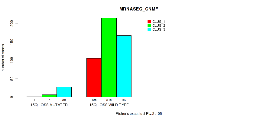 • 15q loss cnv correlated to 'CN_CNMF',  'MRNASEQ_CNMF', and 'MRNASEQ_CHIERARCHICAL'.