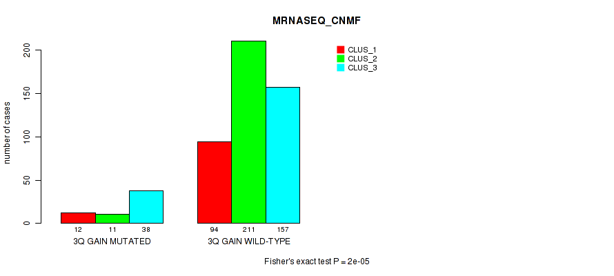 • 3q gain cnv correlated to 'CN_CNMF',  'RPPA_CHIERARCHICAL',  'MRNASEQ_CNMF',  'MRNASEQ_CHIERARCHICAL', and 'MIRSEQ_CNMF'.
