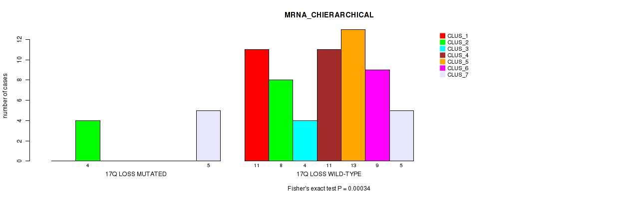 • 17q loss cnv correlated to 'MRNA_CHIERARCHICAL',  'CN_CNMF',  'MRNASEQ_CNMF',  'MRNASEQ_CHIERARCHICAL', and 'MIRSEQ_CNMF'.