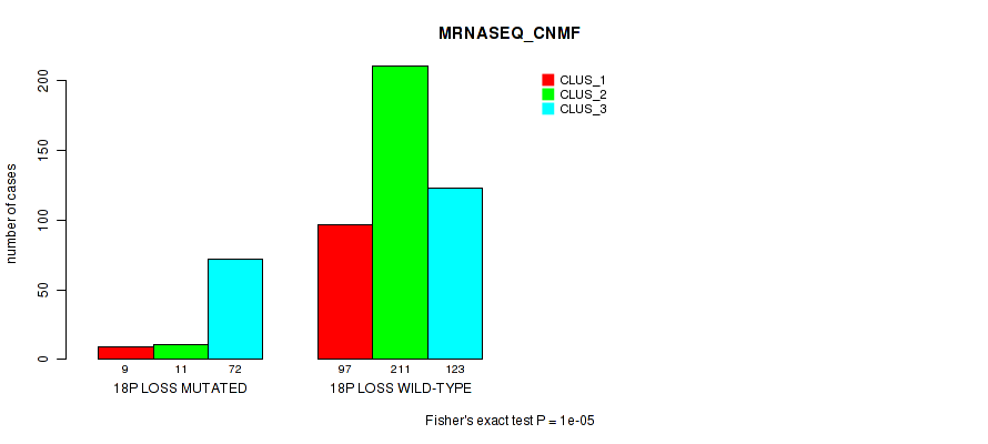 • 18p loss cnv correlated to 'CN_CNMF',  'METHLYATION_CNMF',  'RPPA_CNMF',  'RPPA_CHIERARCHICAL',  'MRNASEQ_CNMF',  'MRNASEQ_CHIERARCHICAL',  'MIRSEQ_CNMF',  'MIRSEQ_CHIERARCHICAL', and 'MIRSEQ_MATURE_CNMF'.