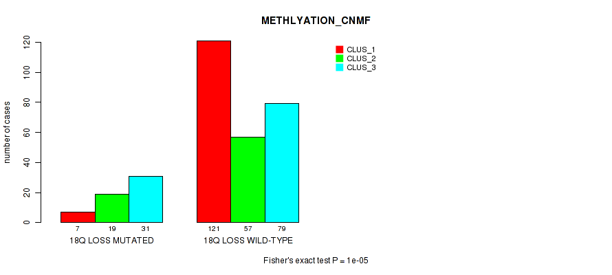 Table S200.  Gene #73: '18q loss' versus Molecular Subtype #4: 'METHLYATION_CNMF'