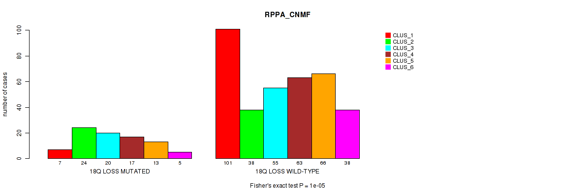 Figure S201.  Get High-res Image Gene #73: '18q loss' versus Molecular Subtype #5: 'RPPA_CNMF'