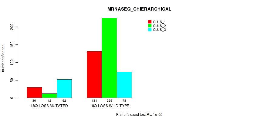 '18q loss' versus 'MRNASEQ_CHIERARCHICAL'