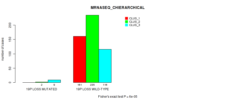 '19p loss' versus 'MRNASEQ_CHIERARCHICAL'