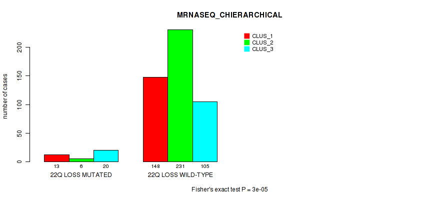Figure S213.  Get High-res Image Gene #79: '22q loss' versus Molecular Subtype #8: 'MRNASEQ_CHIERARCHICAL'