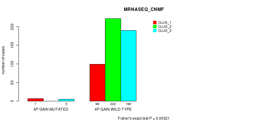 • 4p gain cnv correlated to 'MRNASEQ_CNMF' and 'MIRSEQ_CNMF'.