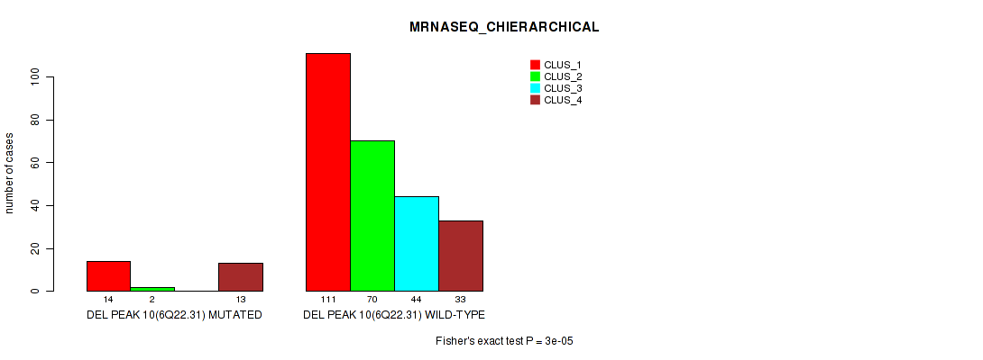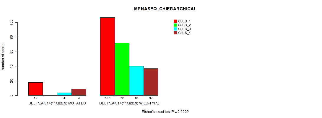 Figure S79. Get High-res Image Gene #24: 'del_14q24.2' versus Molecular Subtype #6: 'MRNASEQ_CHIERARCHICAL'