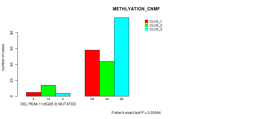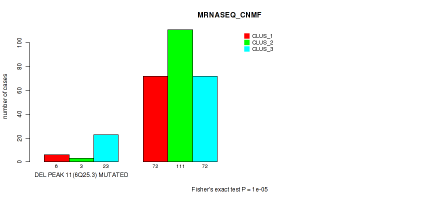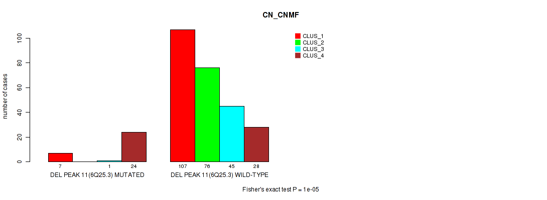 del_6q25.3 cnv correlated to 'CN_CNMF', 'METHLYATION_CNMF', 'MRNASEQ_CNMF', and 'MRNASEQ_CHIERARCHICAL'.