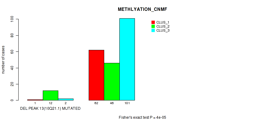 del_10q21.1 cnv correlated to 'CN_CNMF', 'METHLYATION_CNMF', 'MRNASEQ_CNMF', and 'MRNASEQ_CHIERARCHICAL'.