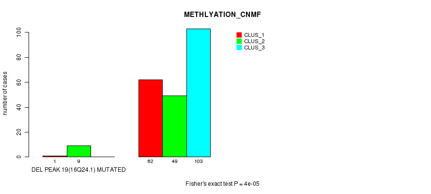 Figure S85. Get High-res Image Gene #26: 'del_16q24.1' versus Molecular Subtype #2: 'METHLYATION_CNMF'