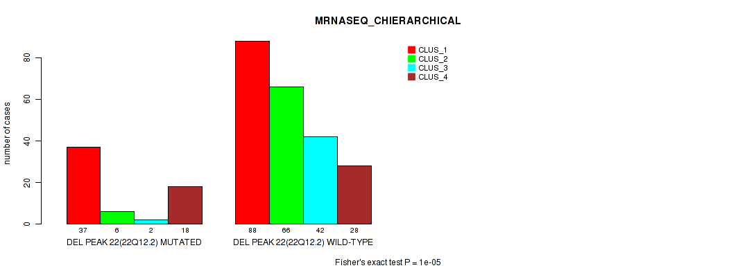Figure S92. Get High-res Image Gene #29: 'del_22q12.2' versus Molecular Subtype #6: 'MRNASEQ_CHIERARCHICAL'