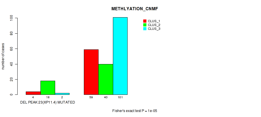 Table S94. Gene #30: 'del_xp11.4' versus Molecular Subtype #2: 'METHLYATION_CNMF'