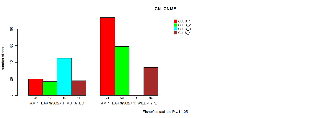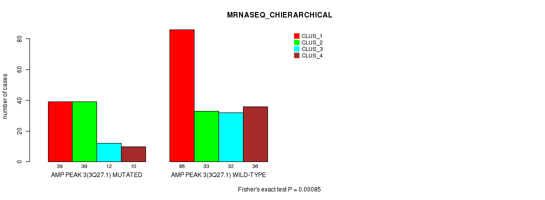 amp_3q27.1 cnv correlated to 'CN_CNMF', 'MRNASEQ_CNMF', 'MRNASEQ_CHIERARCHICAL', and 'MIRSEQ_CHIERARCHICAL'.
