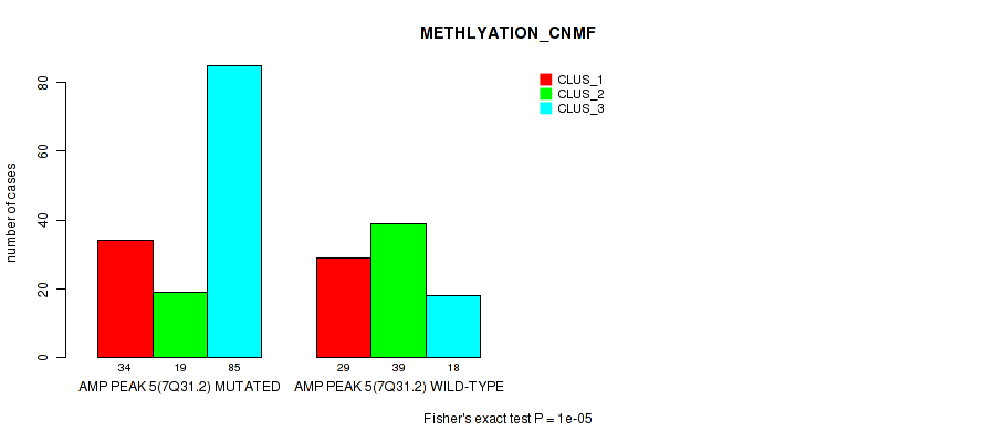 amp_7q31.2 cnv correlated to 'CN_CNMF', 'METHLYATION_CNMF', 'RPPA_CHIERARCHICAL', 'MRNASEQ_CNMF', 'MRNASEQ_CHIERARCHICAL', 'MIRSEQ_CHIERARCHICAL', 'MIRSEQ_MATURE_CNMF', and 'MIRSEQ_MATURE_CHIERARCHICAL'.