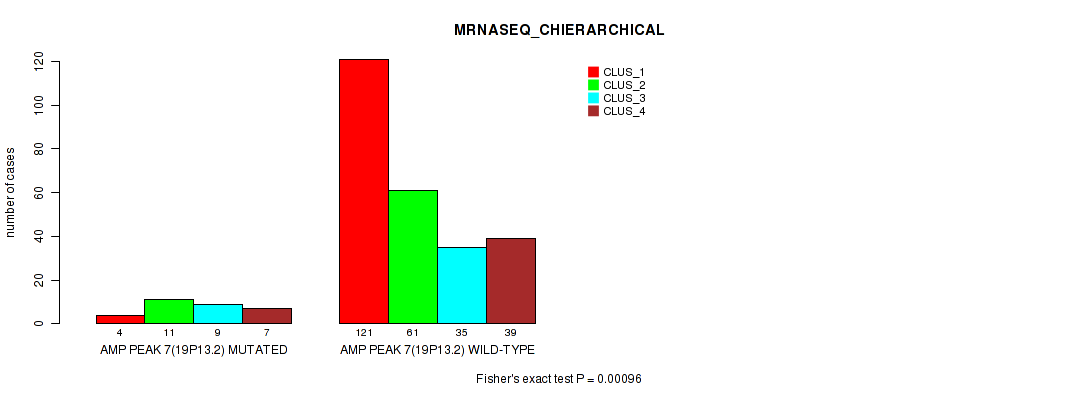 amp_19p13.2 cnv correlated to 'CN_CNMF', 'MRNASEQ_CNMF', and 'MRNASEQ_CHIERARCHICAL'.