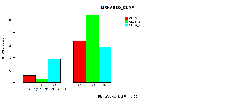 del_1p36.31 cnv correlated to 'CN_CNMF', 'METHLYATION_CNMF', 'MRNASEQ_CNMF', and 'MRNASEQ_CHIERARCHICAL'.